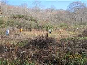 「来年の観察会が楽しみだねェ』との想いで手に力が入ります。天候も良かったことで作業もはかどりました。